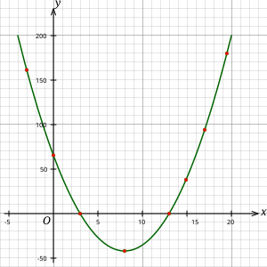 Figure 1: The graph of a quadratic expression is a parabola. The graph above is of the expression: